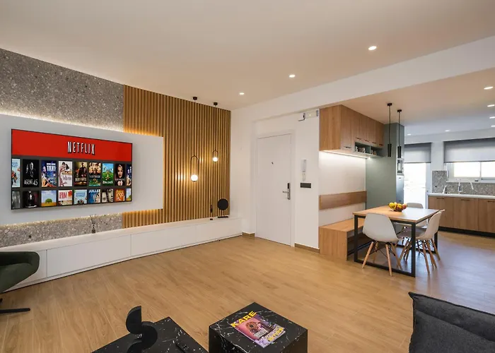 - ❓What are good dining places near this apartment?Guests can choose to dine at Portes, a seafood restaurant offering healthy dishes located 550 meters from this apartment. Alternatively, they can relish Mediterranean dishes at Kalderimi, conveniently situated a 7-minute walk away.